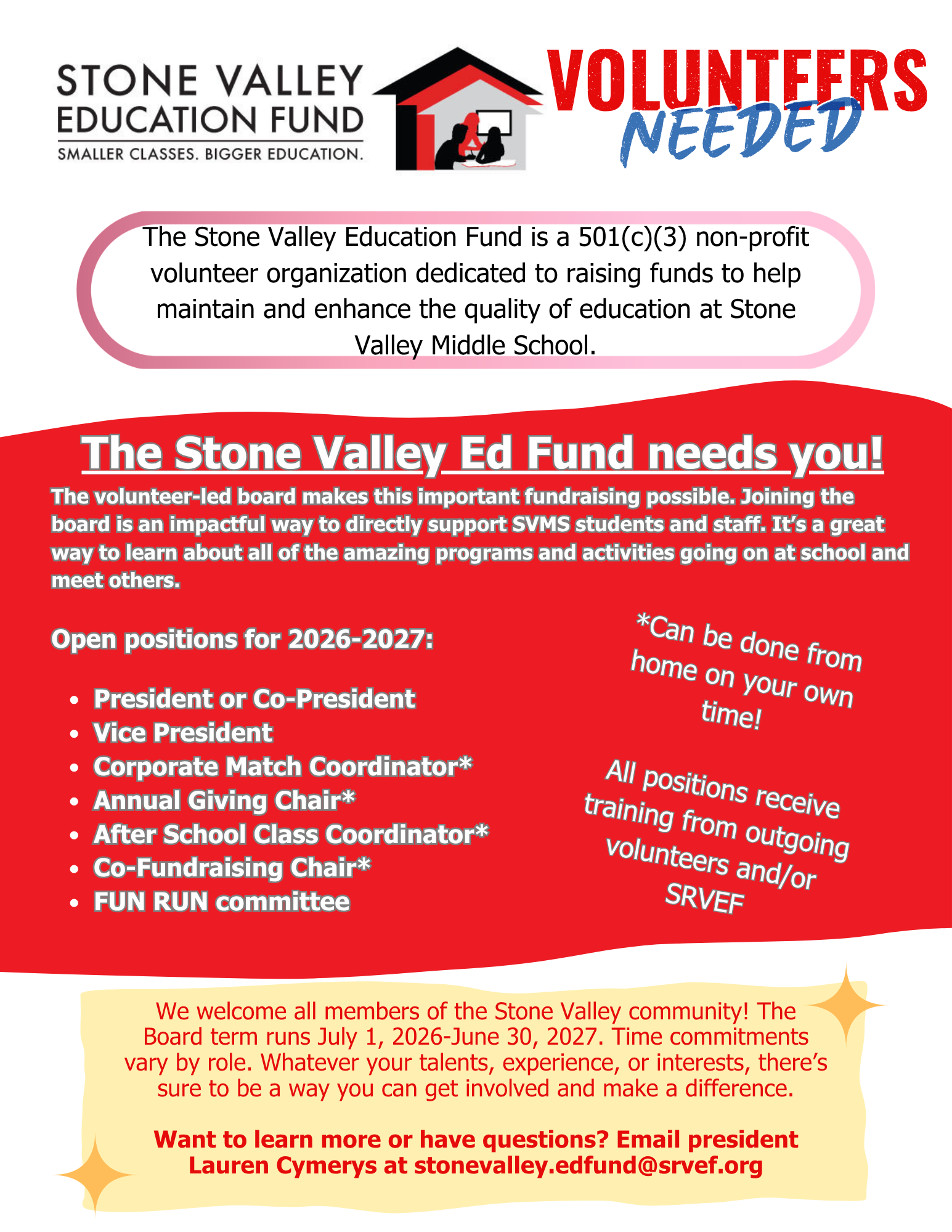Contact Lauren Cymerys at stonevalley.edfund@srvef.org with questions.